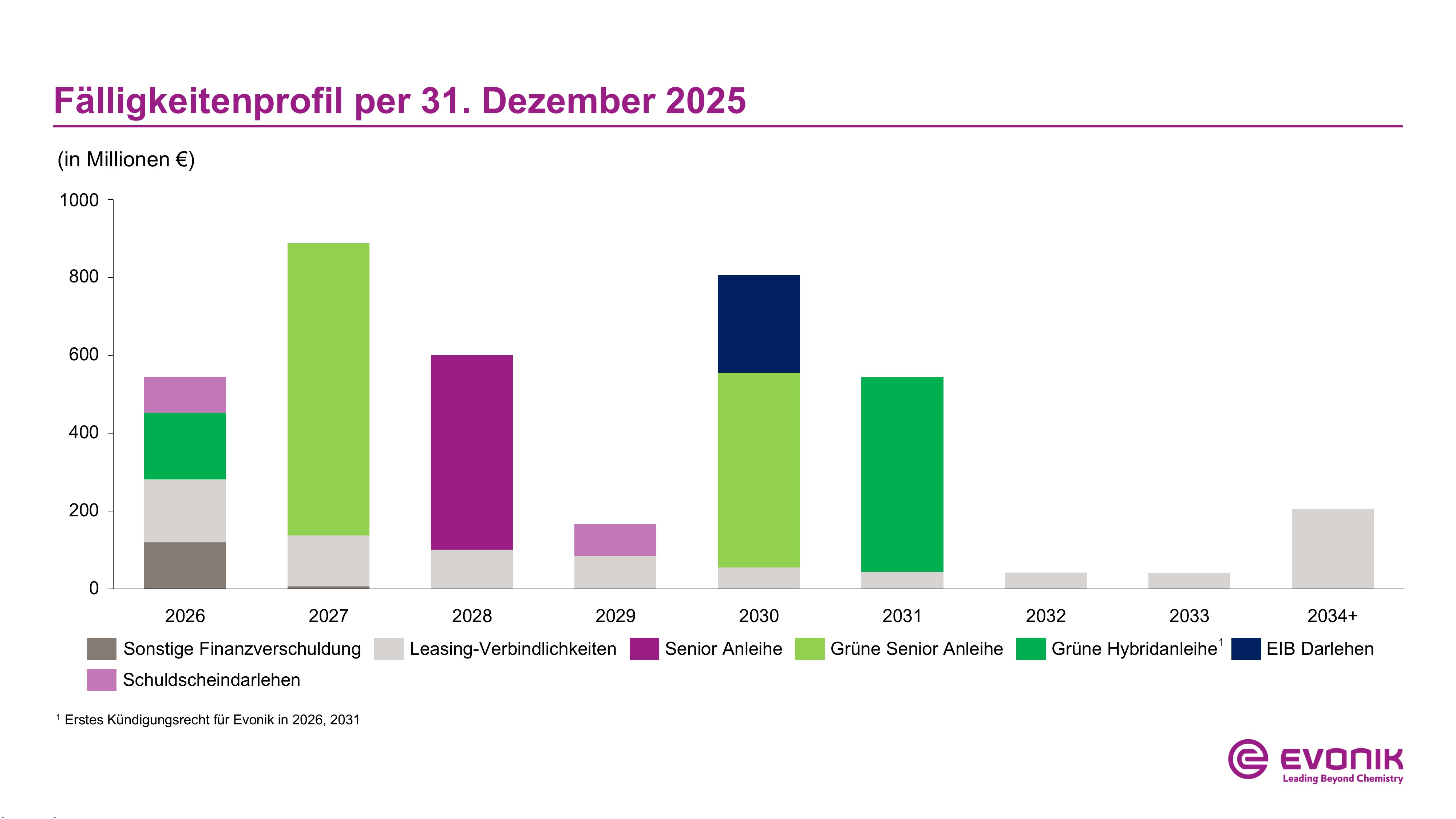 Fälligkeitenprofil per 31. Dezember 2025 (in Mio. €). Download Fälligkeitenprofil - Evonik Industries zum 31. Dezember 2025